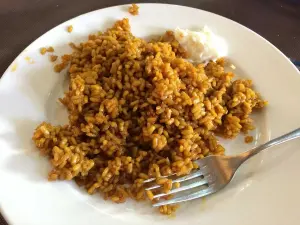 El alioli, o «ajo» en la terminología murciana, es una salsa elaborada a base de ajo y aceite de oliva. Su textura cremosa y sabor intenso complementan perfectamente al Arroz Caldero, añadiendo una dimensión adicional al paladar. Este acompañamiento es tan tradicional como el propio plato y se sirve habitualmente en restaurantes de la zona.